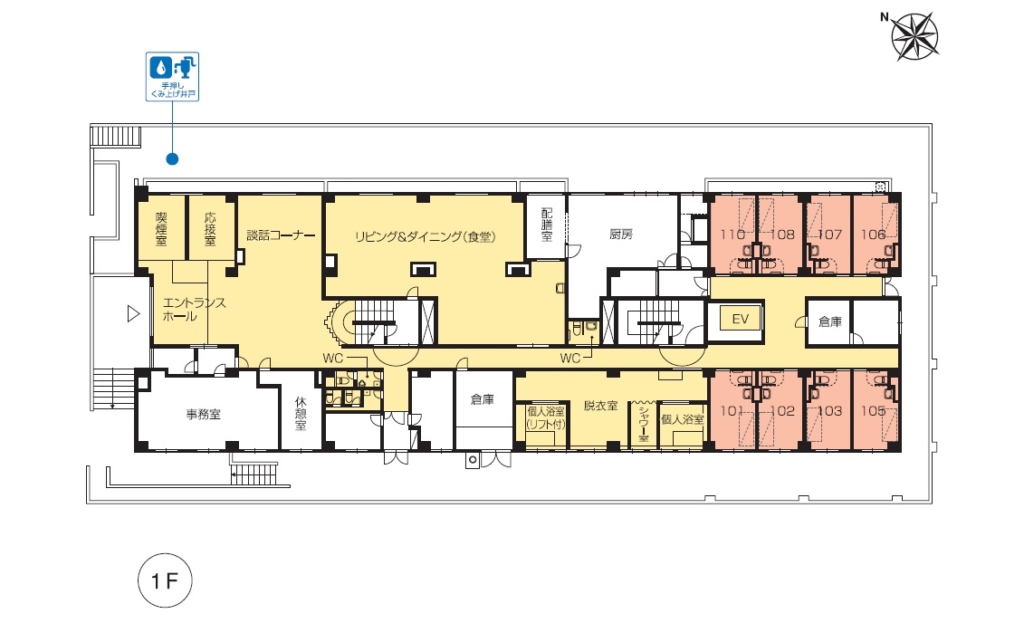 - 適切な介護サービス提供のため、一定の期間を設け、医師の判断、入居者様及び身元引受人の同意のもと、居室を変更していただくことがあります。それに伴い、居室の利用権も移行されます。転室の際に、構造もしくは仕様の変更、1名当たりの居室面積が変わることがありますが、入居金(前払金)及び月額利用料の変更はございません。